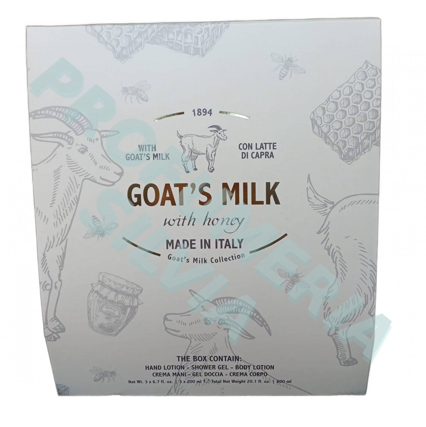 Gift box luxury contenente una crema mani 200ml, un docciaschiuma 200ml e un latte corpo 200ml della linea GOAT'S MILK de La Florentina